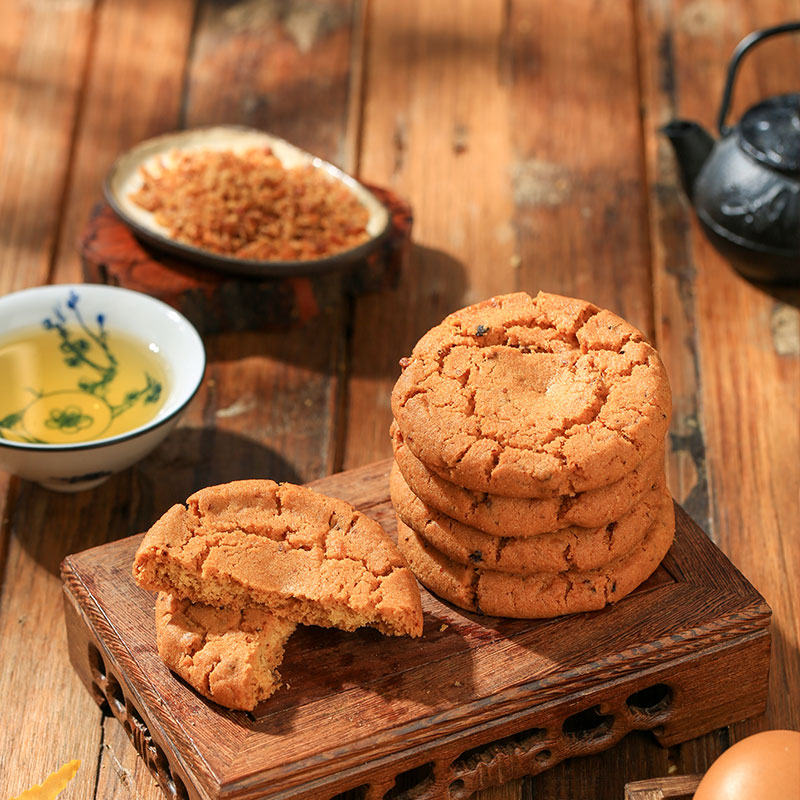 酥脆的口感搭配上黑芝麻,淡淡的甜味中交杂着丝丝咸味,小葱的清香让桃酥吃起来不仅更香也更营养。